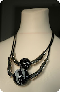 Na początek załączam Wam fotki naszyjnika wykonanego z 5 dużych ceramicznych kulek zawieszonych na rzemieniu. Tadaaamm...